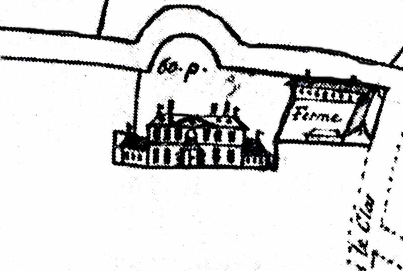 L’HÔTEL DES TOURELLES EN 1701. Détail extrait du plan dressé par Jean Claude Lescuyer, voyer général de l’Abbaye de Saint-Denis, Archives Nationales S2328. |