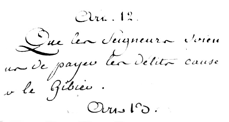 An. 12.Que les seigneurs soient tenus de payer les délits causés par le gibier.