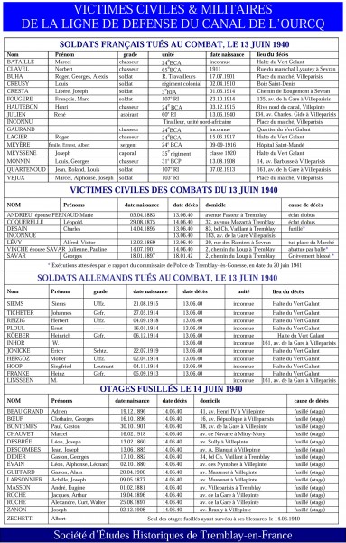 je ne trouve pas dans la liste des civils tué en 1940 , le nom de mon grand-oncle, civil assassiné en tant qu' otage, il avait 17 ans et demeurait dans la rue qui porte son nom, Jacques Debris. Son nom figurait lorsque enfant j habitait Tremblay, sur le monument aux morts.