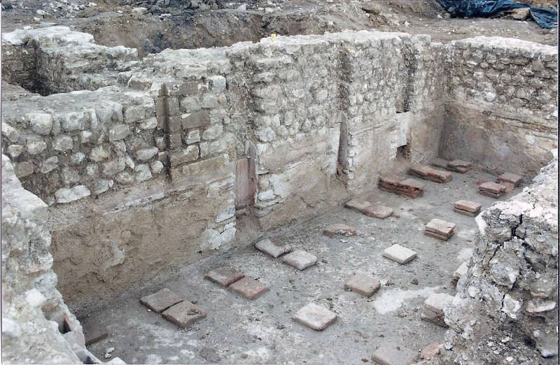la ST30 occupe l’angle sud-est du bâtiment et se développe sur une surface de 25 m2 (5,20 m x 4,80 m). C’est la pièce la plus vaste de l’ensemble thermal. L’alimentation en chaleur est assurée par le praefurnium 2 s’ouvrant au milieu du mur sud (M25) à 2,20 m de chaque extrémité. Les tubuli, encore en place, répartis le long des murs permettaient l’évacuation des gaz et des fumées dégagées par le foyer. La répartition de ces dispositifs paraît avoir été déterminée dès la construction, trois dans le mur est (M 26) et trois dans le mur ouest. Les tubuli sont toujours accolés deux par deux, dans un logement de 0,20 m par 0,40m. Les nombreux fragments de dalles calcaires retrouvés dans le remblai stratigraphique et les éléments de plinthe demeurés en place sur le niveau supérieur du chaînage de briques laissent supposer l’aménagement d’un sol dallé et le plaquage de la base des murs. La partie supérieure des et le plaquage de la base des murs. La partie supérieure des parois semble avoir été recouverte d’enduits peints.