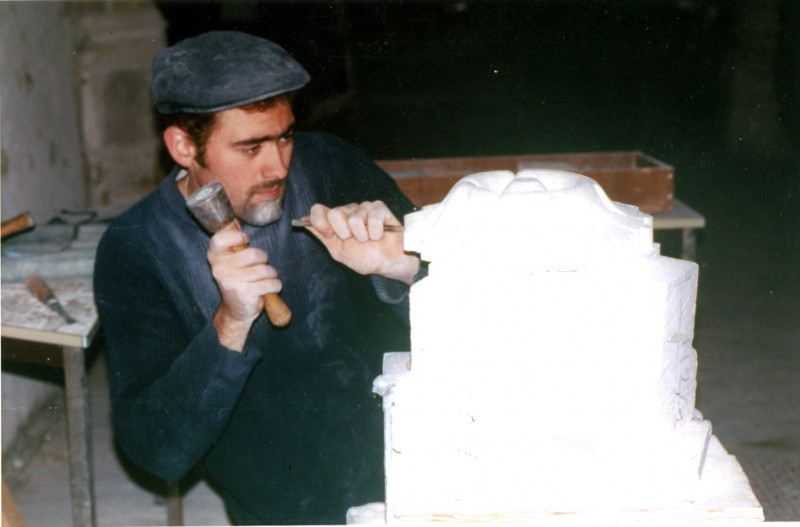 Taille de pierre : réfection à l'identique d'un décor de clé pendante, octobre 1997, cliché SEHT
