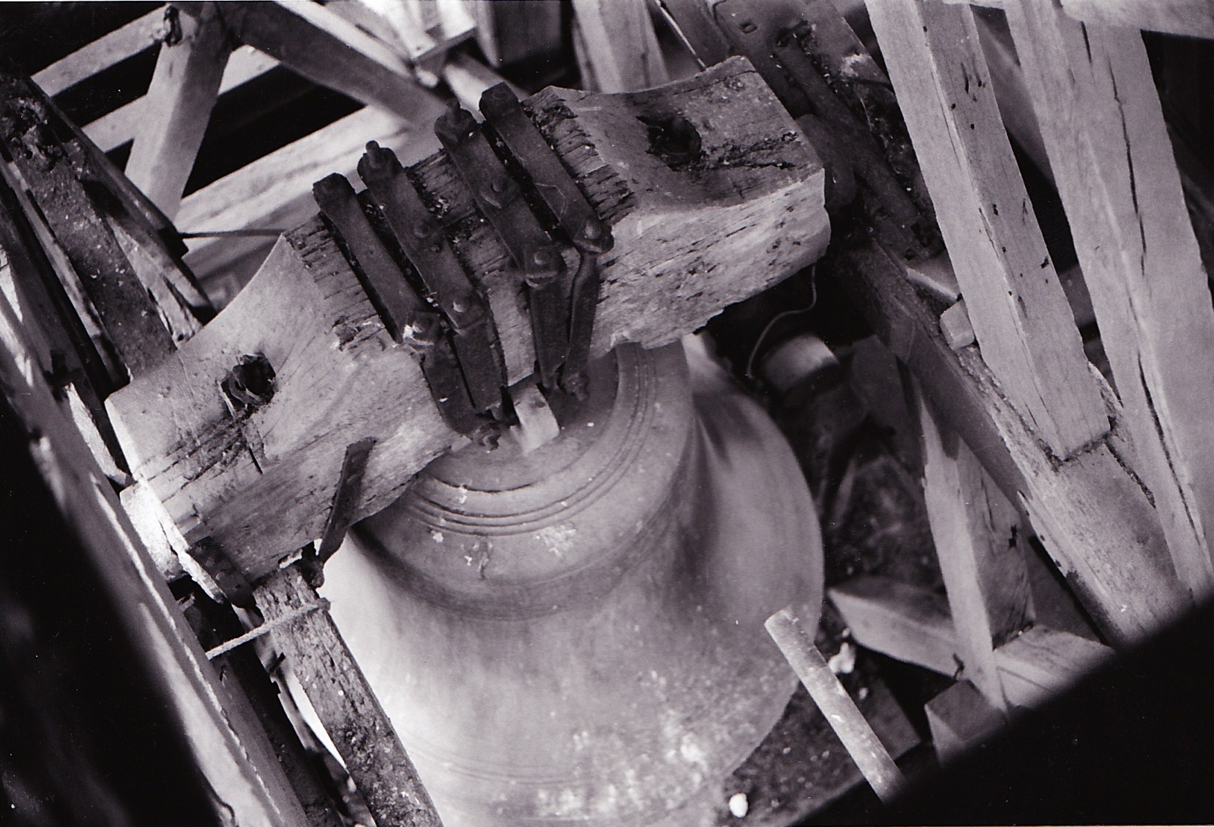 Le cliché montre les différentes parties de la cloche et du mouton qui la supporte. Chaque partie de la cloche porte un nom déterminé par sa forme :