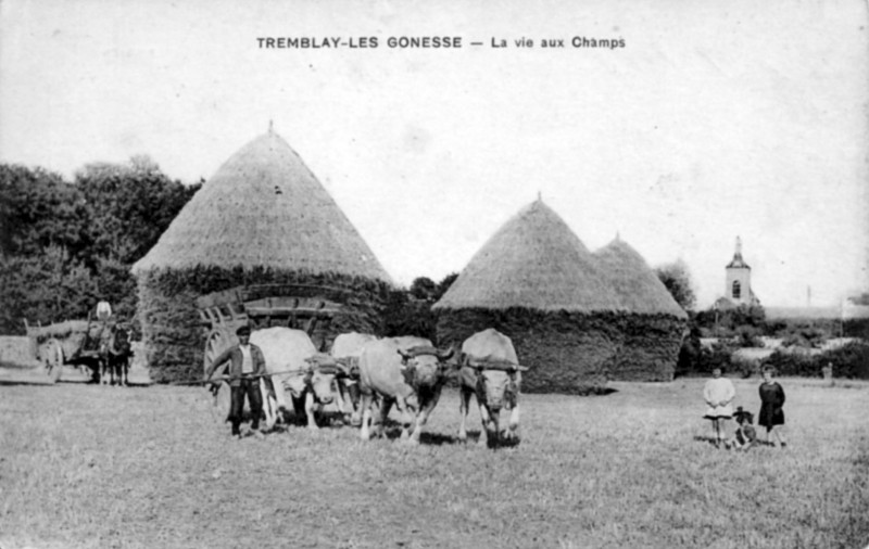 Depuis 1854, le clocher de Saint-Médard signe le paysage., conformément au voeu exprimé en 1782 par les habitants de Tremblay. CPA édition Weival, cliché SEHT