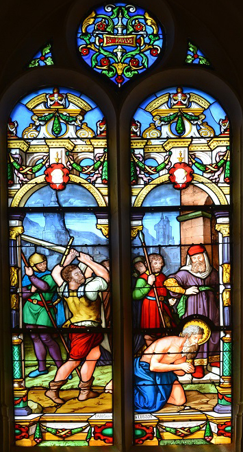 Le dernier vitrail de la série a pour sujet la décapitation de Saint PAUL.