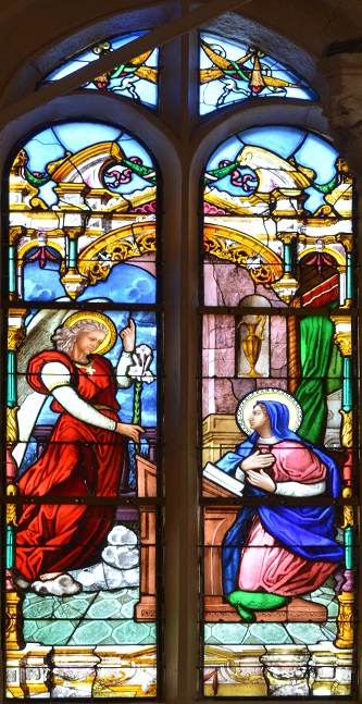 Le premier vitrail de la chapelle latérale nord de la 9ème travée est l’Annonce faite à
