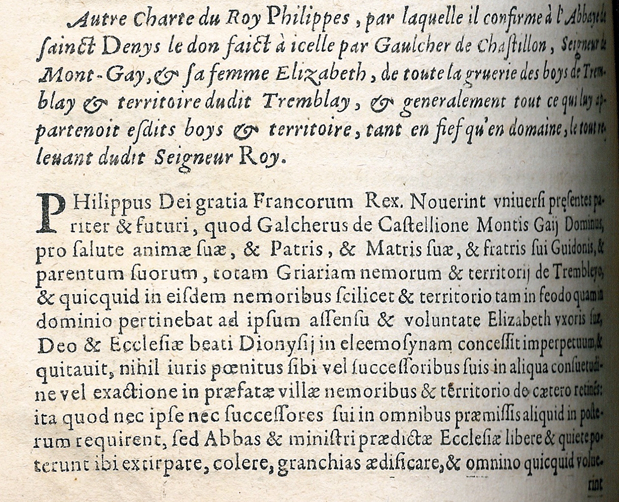 Charte du roi Philippe Auguste confirmant à l’abbé de Saint-Denis, la gruerie des bois de Tremblay.