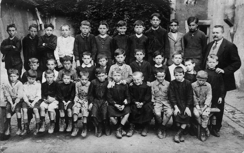 Germain HÉRICOURT et ses élèves, vers 1922, carte photo, collection SEHT.