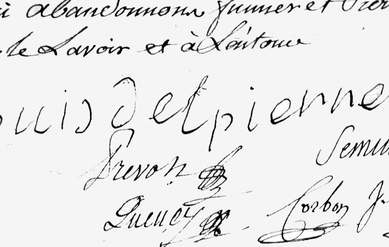 Signatures comparées de Jean Jacques Chauffourier et Louis Delpierre,