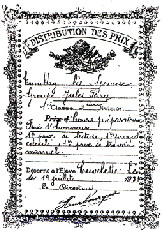 Ėcole Jules Ferry, année scolaire 1930/1931 Prix d’honneur décerné à Léonce Cuvelette, signé Hurbourque, directeur