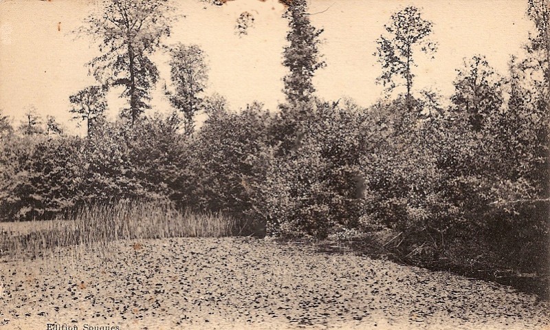 Une des mares de Tremblay, CPA 1923, collection SEHT. Le site des lotissements, en grande partie boisé, est parsemé de mares.