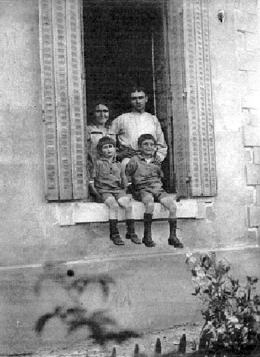 La famille Cuvelette. À la fenêtre Léonce est à gauche du cliché son frère Marc à droite.