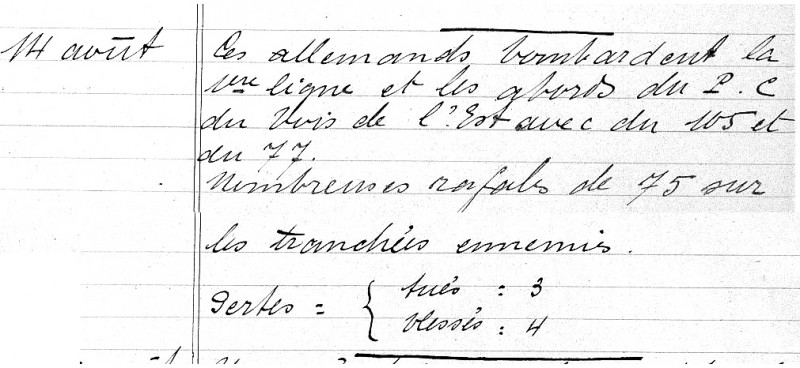 Les allemands bombardent la 1ère ligne et les abords du PC du bois de l’est avec du 105 et du 77.