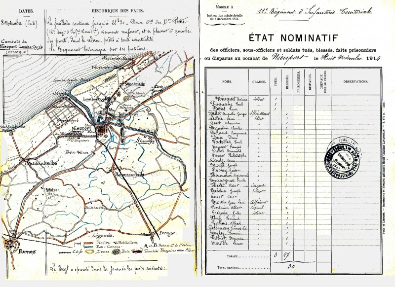 Le journal de marche et des opérations du 11e régiment d’infanterie territoriale relate l’attaque dans laquelle Paul Duquenne a été tué : « D’après les ordres du général commandant la 161e Brigade : Le lieutenant-colonel portera son régiment sur la rive droite de l’Yser, dans les tranchées installant d’autres tranchées devant les passages créés sur 1’Yser et essayant d’occuper les premières maisons de Lombartzyde. Le lieutenant-colonel du 11e régiment aura le commandement du secteur compris entre l’Yser jusqu’à la route de Lombartzyde incluse.