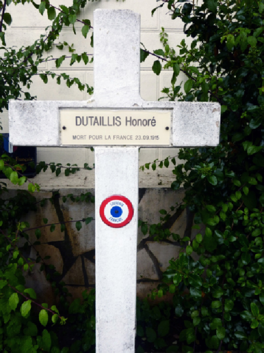 Ancien carré militaire du cimetière de Tremblay, sépulture d’Honoré, Mader Dutaillis. Sa dépouille a été transférée en 2014 dans l’ossuaire du nouveau carré militaire.