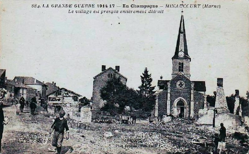 Les ruines du village de Minaucourt attestent la violence des combats au cours desquels Honoré, Mader Dutaillis est mort pour la France le 25 septembre 1914.