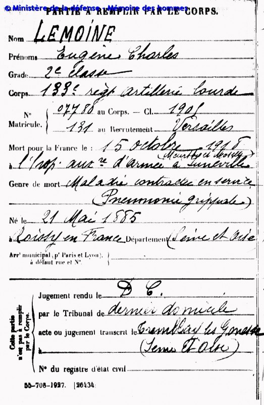 LEMOINE Eugène, Charles , mort pour la France le 15 octobre 1918