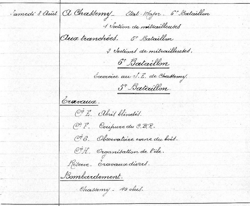6e bataillon : exercice à Chassemy. 5e bataillon : Travaux.