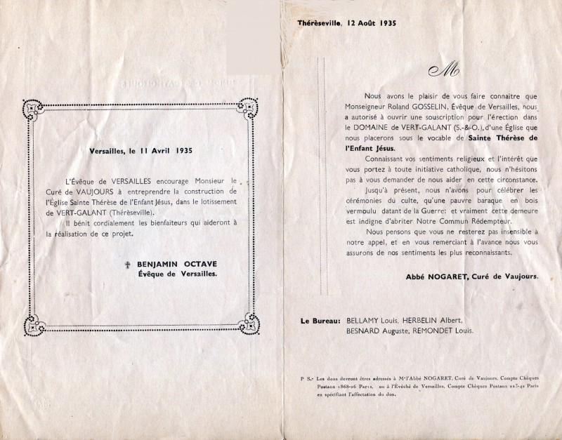 Que le bon Dieu ait un jour sa maison vaste et bien centrale dans cet immense désert spirituel : et il n’est pas à douter que ce conglomérat de petits quartiers pauvres ne devienne une bonne cité chrétienne. Nous unissons nos vœux à ceux de Nos Seigneurs les évêques de Versailles et de Meaux pour que ce rêve soit bientôt une réalité.