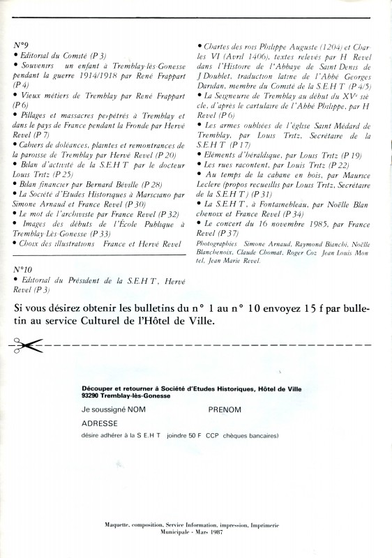 Revue de la SEHT, n° spécial mars 1987
