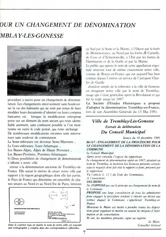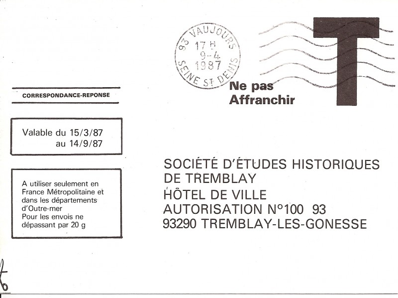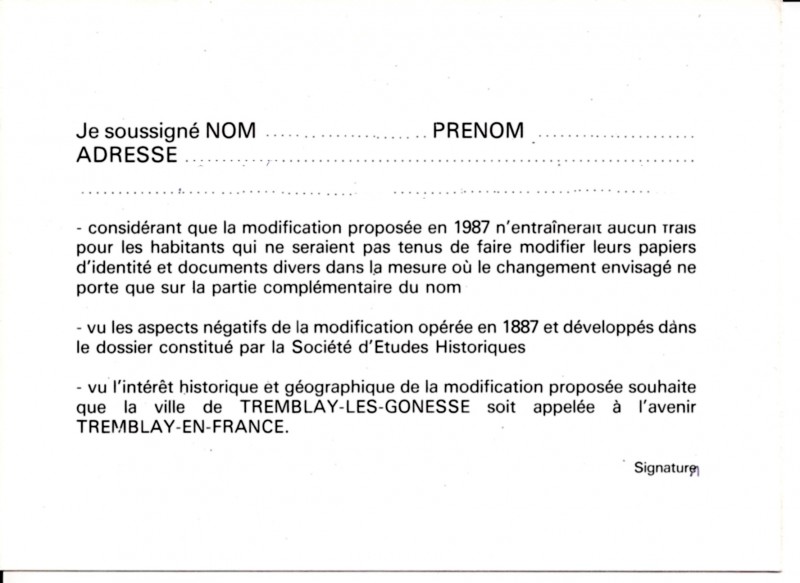 carte T éditée pour crecueillir l'avis des Tremblausiens sur le changement de dénomination de leur ville