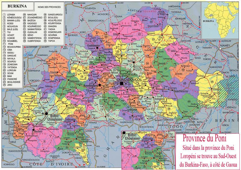 Localisation du département de Loropéni (dans la province du Poni, au sud-ouest du Burkina Faso)