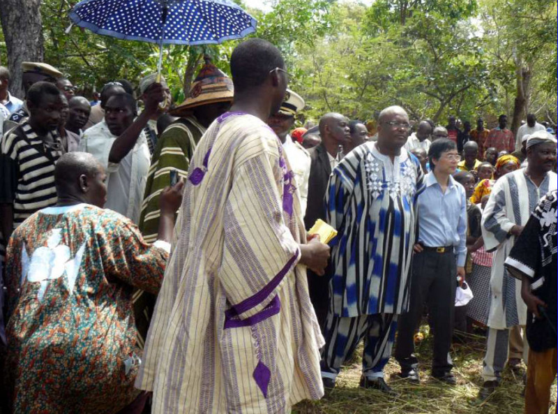 Les ambassadeurs d’Égypte et du Canada étaient également présents. Les autorités traditionnelles étaient représentées par le roi des Gans, identifiable à son chapeau et à l’ombrelle portée par l’un de ses suivants. Cliché SEHT-HR