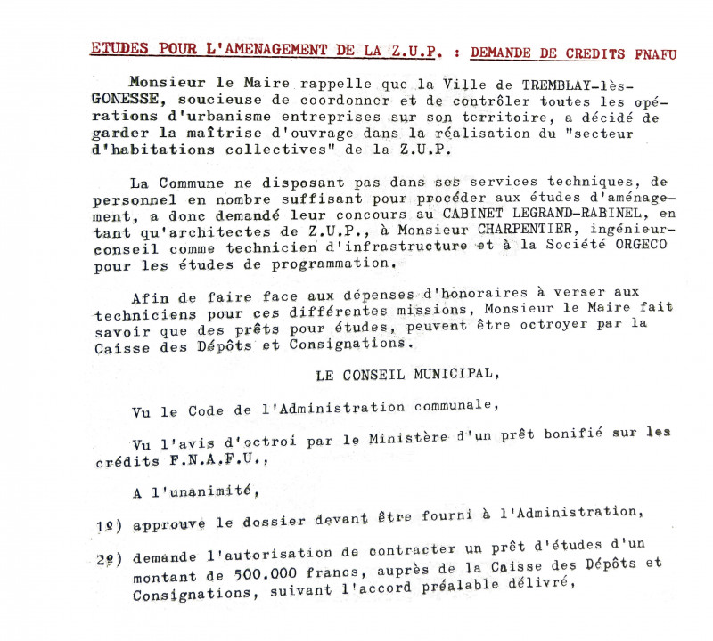 Délibérations du Conseil Municipal de Tremblay-lès-Gonesse relatives à la ZUP
