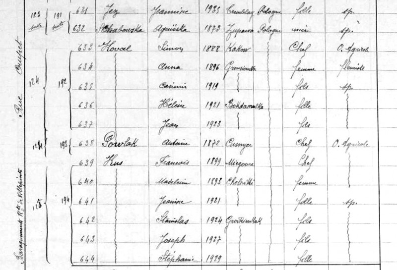 Recensement quinquennal de population de 1936, baraquement route de Villepinte, archives départementales