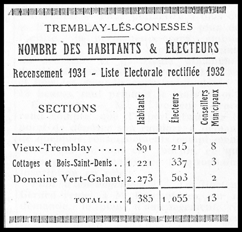 Les dirigeants de l’association syndicale du Vert-Galant analysent lucidement le rapport de forces qui oppose les lotis à la majorité municipale. Ils savent qu’ils sont majoritaires. Pour que leurs lecteurs en prennent conscience, ils publient le recensement de population de 1931, la liste électorale rectifiée de 1932 et les invitent à s’inscrire sur les listes électorales. Le directeur syndic annonce clairement la chute de la majorité municipale rurale aux prochaines élections municipales, dès 1932, dans un article intitulé « la dernière avant-dernière de M. LE GUILLOU » (10).