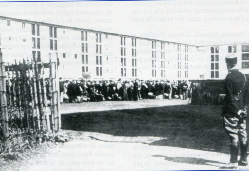 Non, c’était un militaire. On était mélangé avec eux. On n'était pas considéré comme des civils. Là a commencé la vie au stalag. Il y a eu deux périodes. Un séjour dans de grandes tentes de 100 places environ. Là nous retrouvons des Nord-Africains. On ne nous impose aucune corvée. Ensuite on nous fait descendre dans une caserne en construction, située au has de la colline. Les bâtiments sont imposants. Ils sont dépourvus de portes, comportent deux étages, et des fenêtres ou s’engouffre le froid.