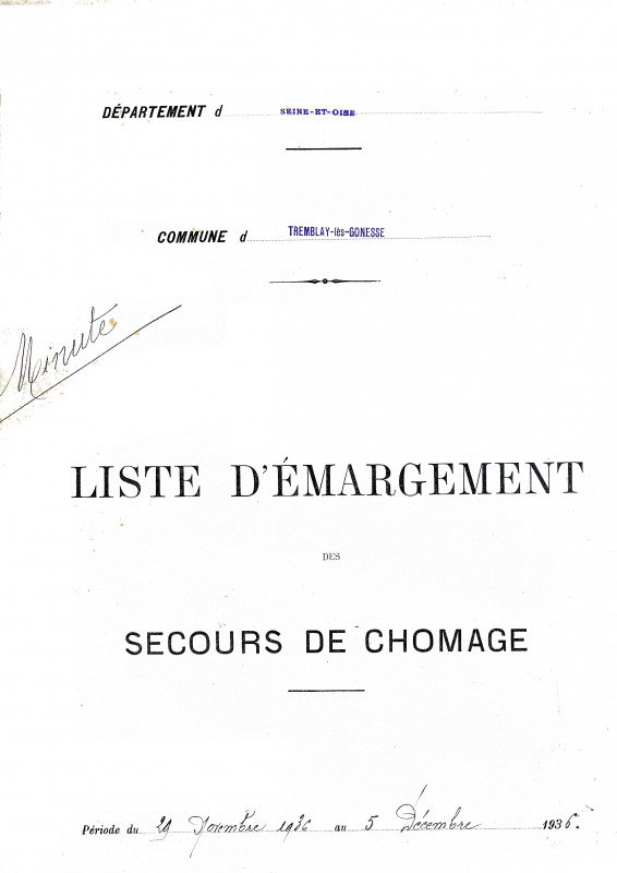 Liste d’émargement des chômeurs de Tremblay-lès-Gonesse cliché SEHT