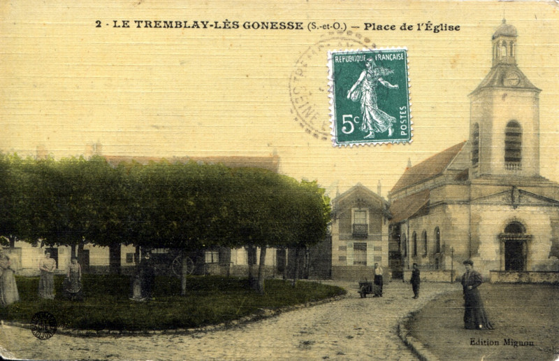 Ombragée de tilleuls, la place de l’église est le point de ralliement des grévistes, dans une ambiance festive. CPA, collection SEHT
