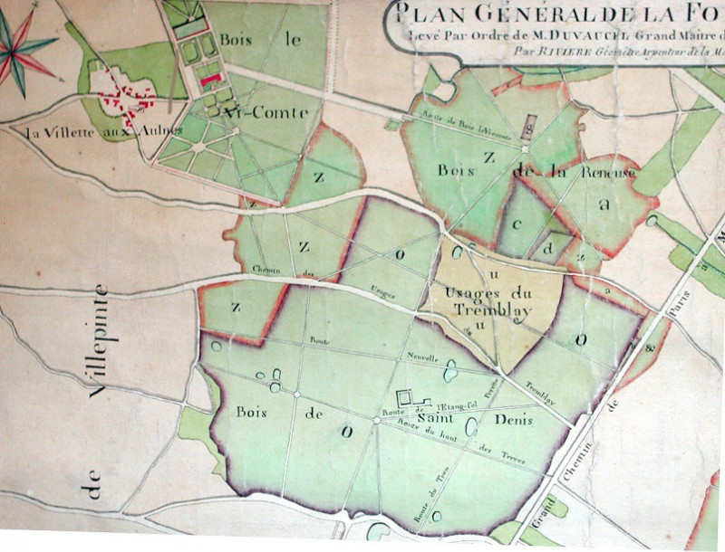 Ce plan montre que les bois de Tremblay s'étendent jusqu'au grand chemin de Meaux, l'actuelle RN3.