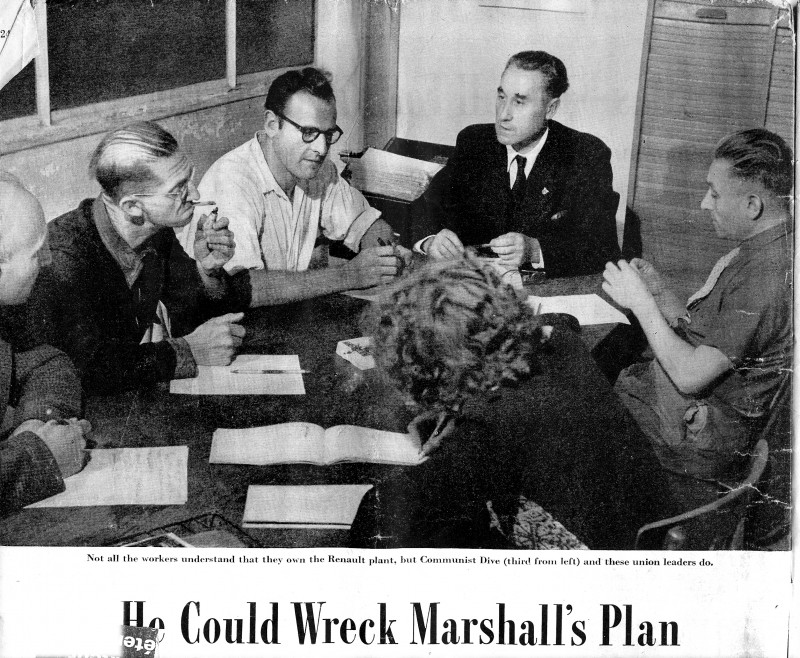 - Page 26 : "Tous les ouvriers ne comprennent pas qu'ils possèdent l'usine Renault mais le communiste Dive (le troisième en partant de la gauche) et ces leaders syndicaux le savent."