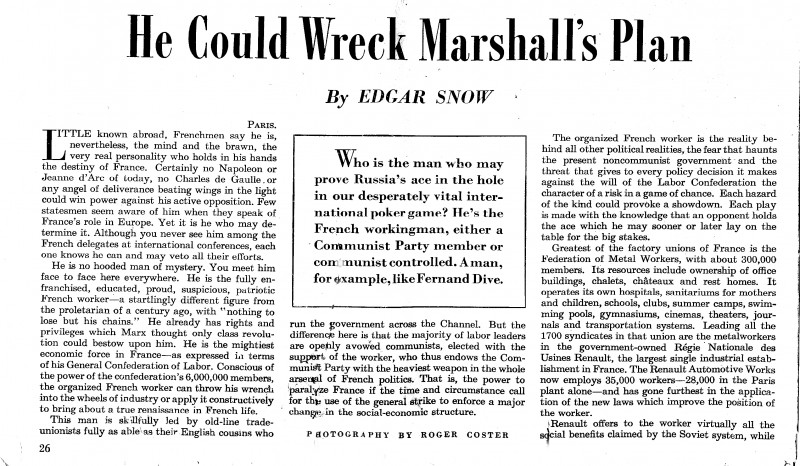 Traduction de l'article : "He Could Wreck Marshall's Plan" par Edgar Snow, publié dans The Saturday Evening Post, le 4 octobre 1947.