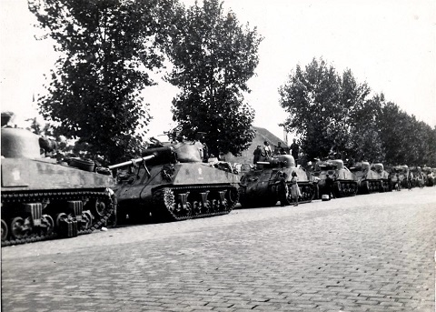 Chars de la 2e DB, stationnés le 26 août à Aubervilliers, prêtes à passer à l'attaque pour libérer la parie ouest du future département de la Seine-Saint-Denis, cliché extrait de Aubermensuel, supplément au n° 144, novembre 2004.