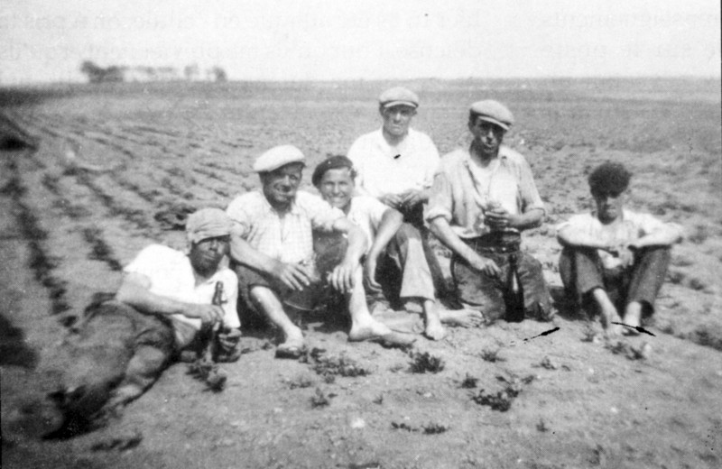 équipe d'ouvriers agricoles en plaine, année 1940. Cliché SEHT, d'après l'original des archives de Mme Catté