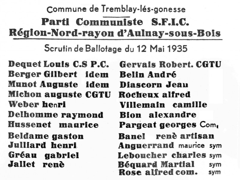Election municipale, scrutin du 12 mai 1935, Bulletin de vote de la liste communiste