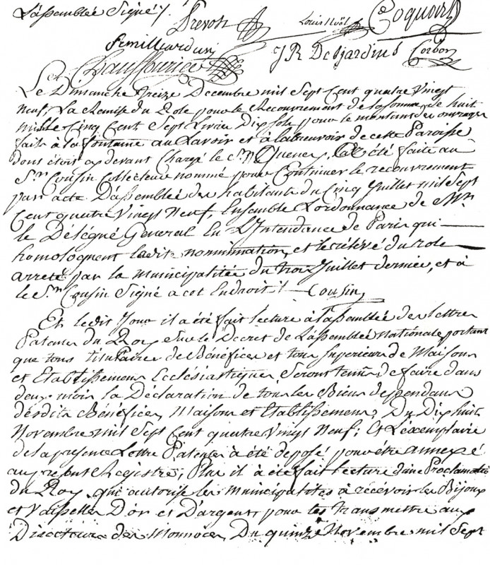 Délibération du Conseil général de la commune de Tremblay en date du 30 juillet 1790, Archives municipales