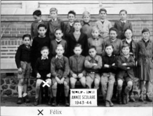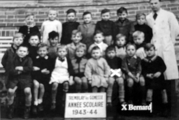 Nous avons relaté plusieurs enfances cachées notamment à Montfermeil et Villepinte, mais nous n’avions rien trouvé sur Tremblay jusqu’à la réception d’un courriel de Brigitte Dounaevsky en 2022. Elle nous apprenait qu’elle avait reconnu son père, Bernard DOUNAEVSKY, sur une photo de classe de l’école du Bois-Saint-Denis, datée de l’année scolaire 1943-1944, publiée sur Internet. Les registres d’inscription de cette école n’ayant pas été conservés, les photos de classe sont le seul document qui atteste la présence à Tremblay de Félix et Bernard, mais cette preuve est irréfutable.