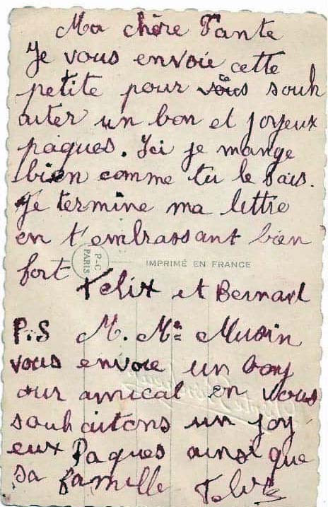 La première information sur le placement des enfants DOUNAEVSKY a été une carte, non datée, adressée par Félix à sa tante, pendant
