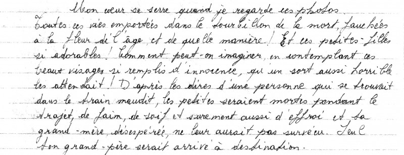 Si Bernard n’avait pas trouvé les mots, sa belle-soeur les avait particulièrement bien choisis, pour les dire à ses nièces, dans une lettre dont l’extrait ci-dessous nous permet de comprendre l’impact du traumatisme subi par Bernard et Félix DOUNAEVSKY :