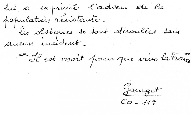 Les obsèques se sont déroulées sans incident. Il est mort pour que vive la France. »