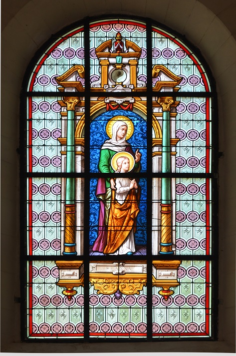 Les vitraux de la 3ème travée sont dédiés à deux saints, présentés par la tradition comme les parents de la Vierge MARIE. Sa mère sainte ANNE au nord, du côté de la chapelle dédiée à la VIERGE, son père saint JOACHIM au sud, du côté de la chapelle dédiée à la SAINTE-FAMILLE.