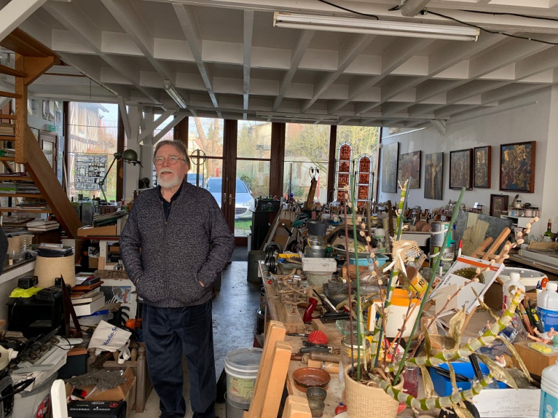 Florent Chaboissier dans son atelier, avril 2025, cliché SEHT, © SEHT