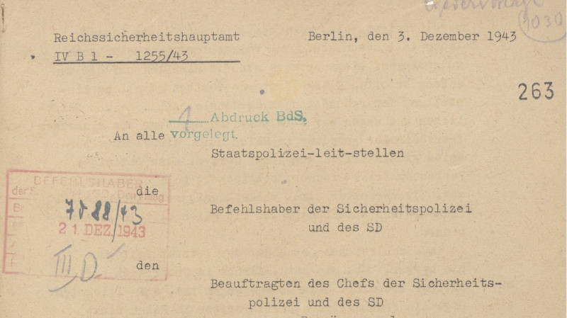Ordonnance KKALTENBRUNNERALTENBRUNNER Direction de la Sûreté du Reich IV B 1 - 1255/43