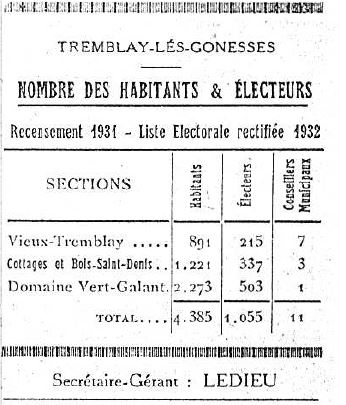 1 - Cf. De l’âge rural à l’âge urbain, Tremblay-lès-Gonesse 1923-1935, bulletin n° 8 de la SEHT, année 1983.