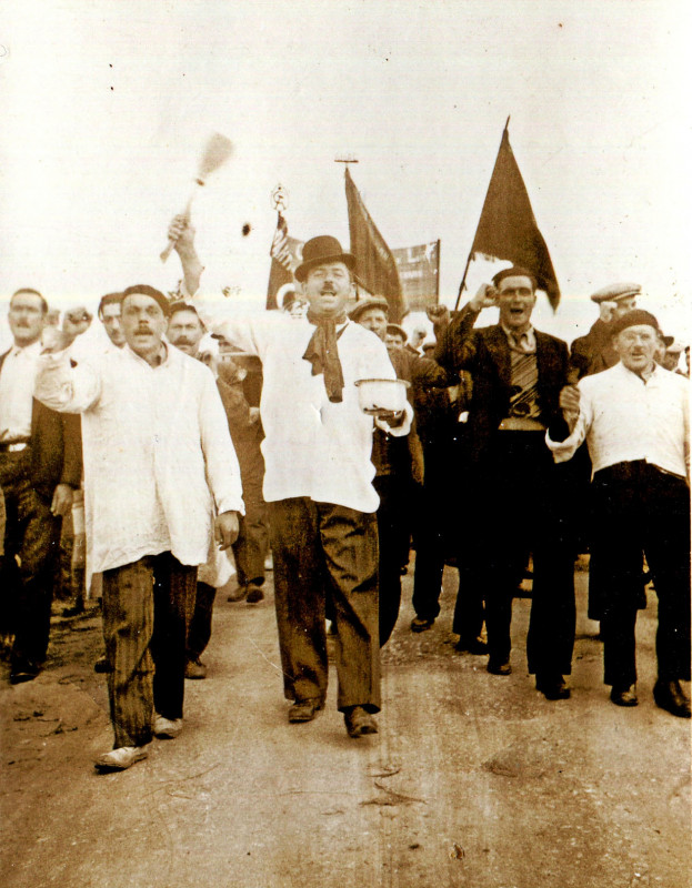 Manifestation festive saluant la victoire électorale du BOP, Bloc Ouvriers Paysans, mai 1935,