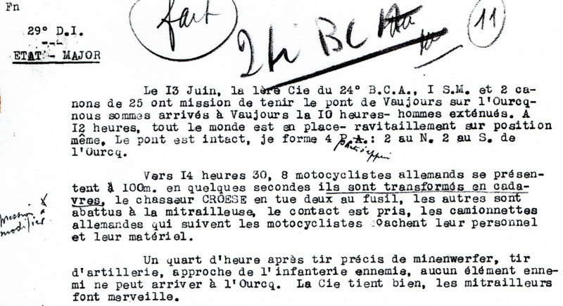 Ce rapport, dont le style est empreint de la fureur du combat livré le 13 juin a été utilisé par les journalistes de Vichy pour décrire le combat livré sur les rives de l’Ourcq. Choqués par les expressions du capitaine Gillot ils ont corrigé l’original conservé aux Service Historique de la Défense. Lorsque Gillot écrit « ils sont transformés en cadavres » ils notent en marge « expression à modifier ». Lorsqu’il écrit « Boches », ils barrent et notent « Allemands », etc.