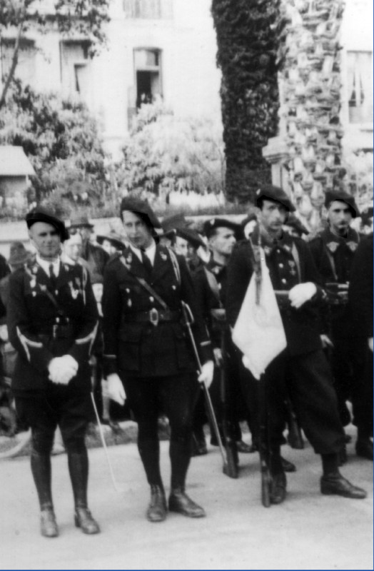 Le capitaine GILLOT (à gauche du cliché), lors d'une revue à Villefranche-sur-Mer, ville garnison du 24e BCA, 1939.